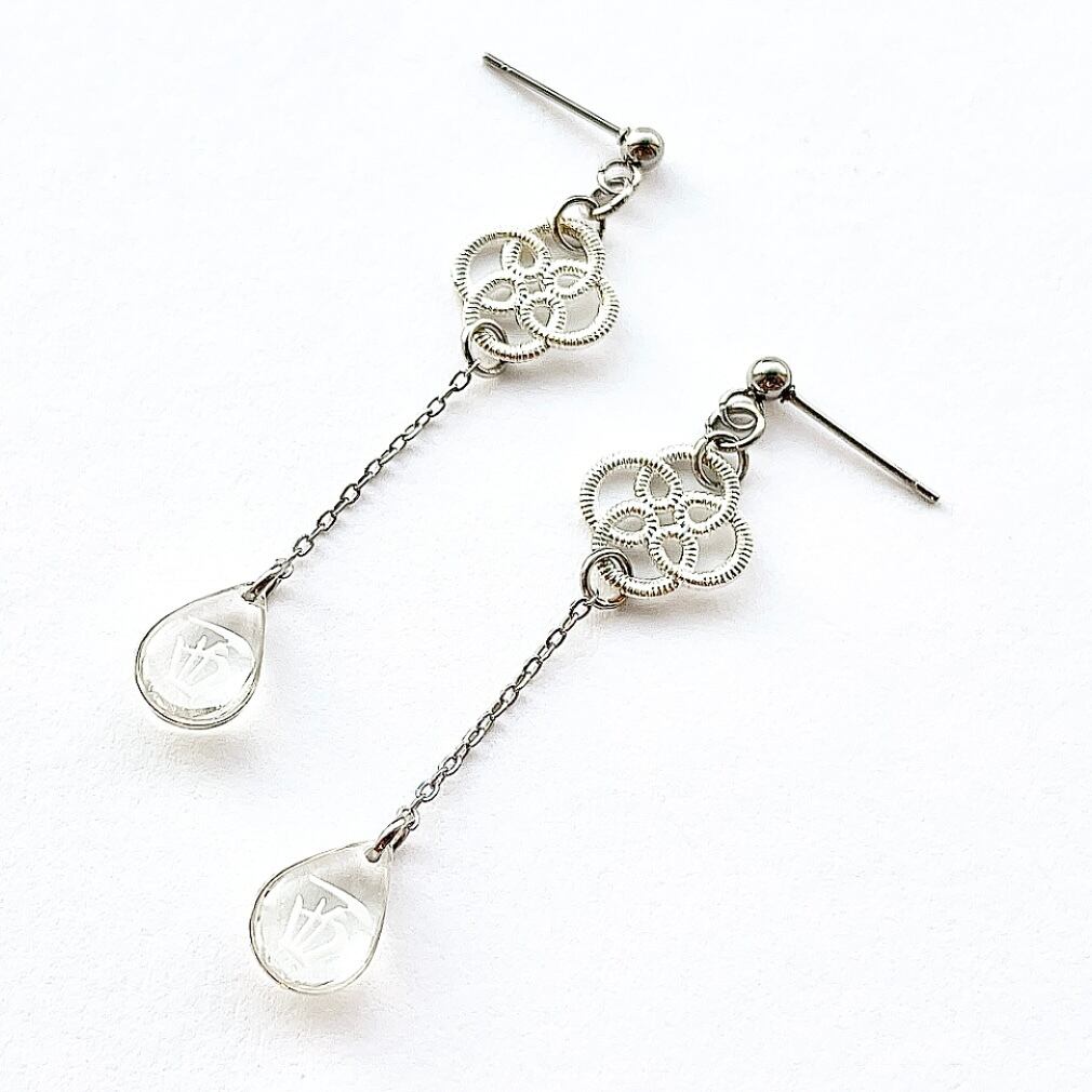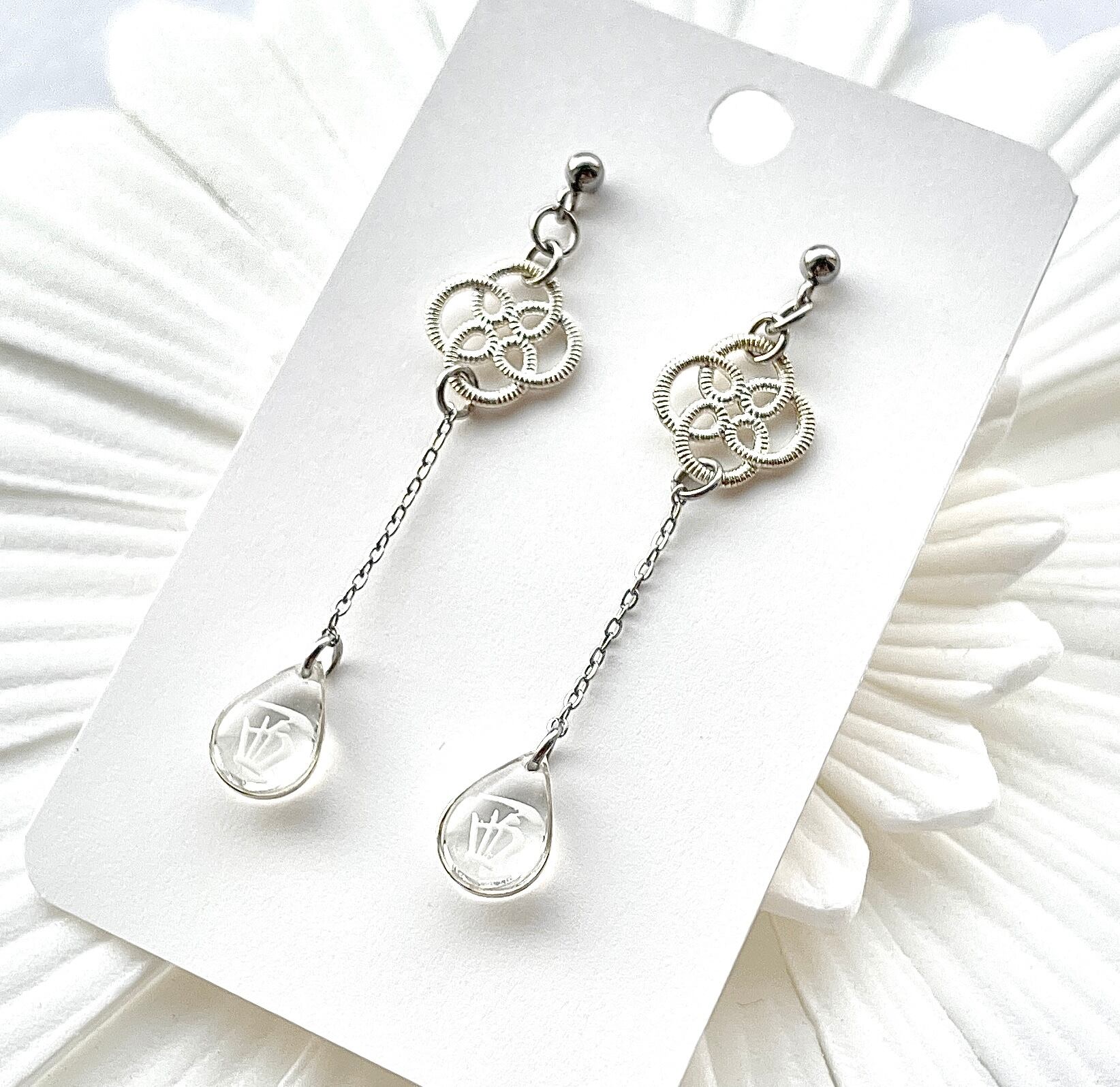 【New】ピアス・イヤリング 中華風飾り結び×ドロップ 西