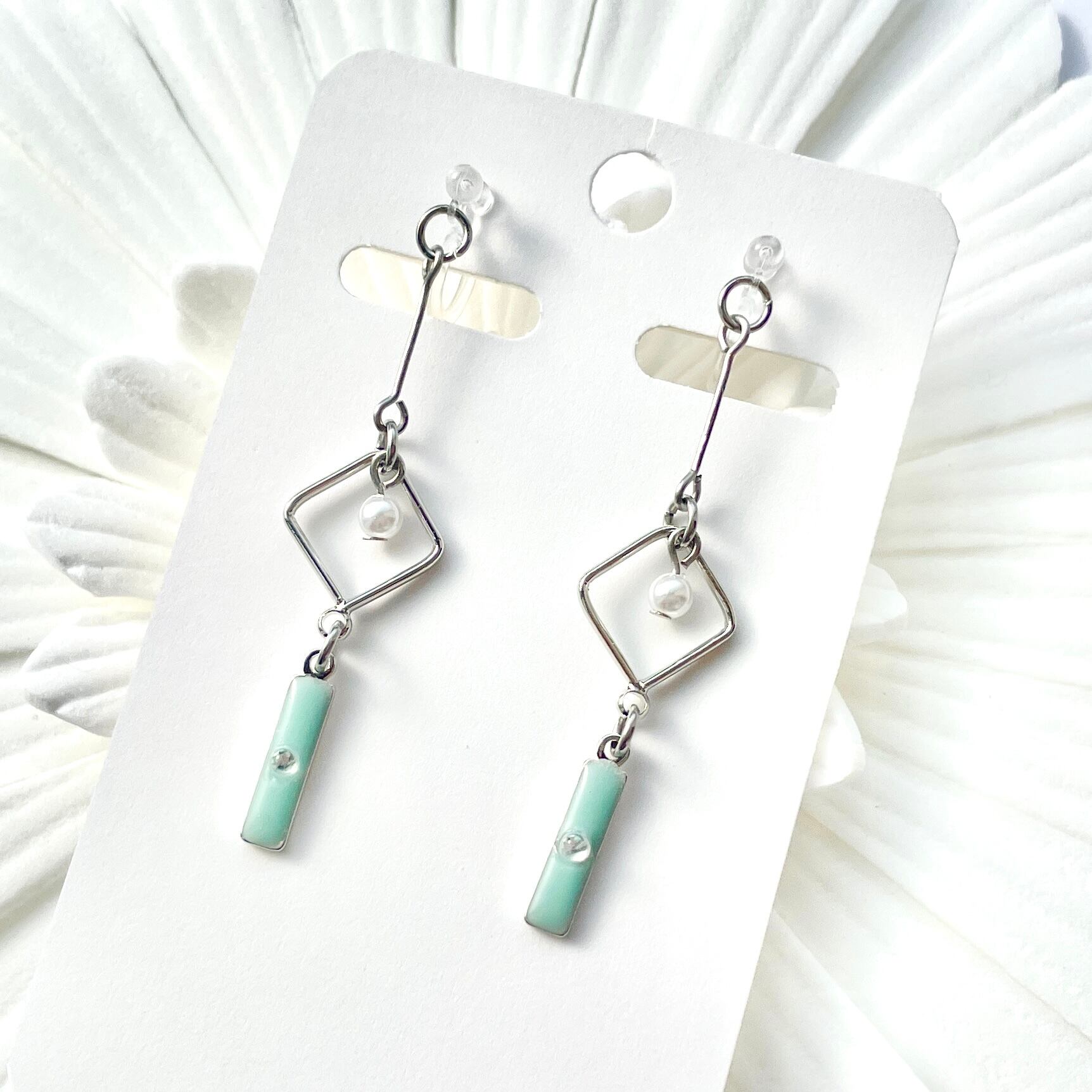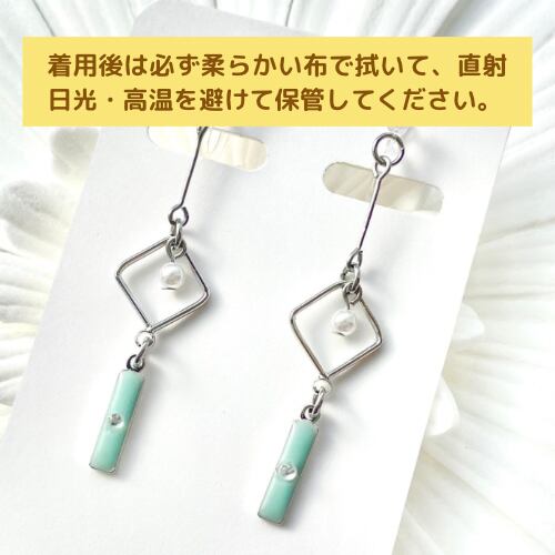 【New】ピアス・イヤリング しゃらしゃら点棒 ミント