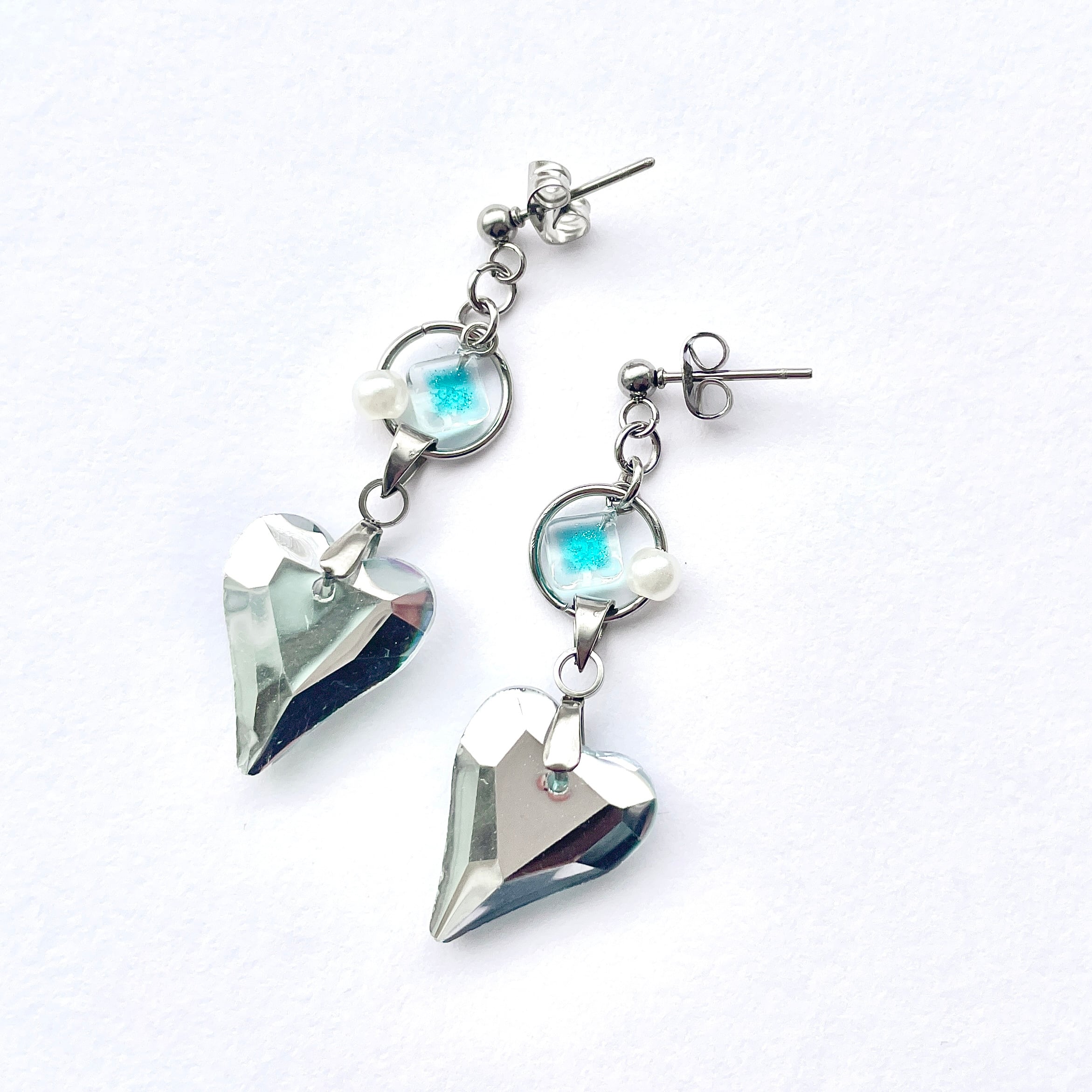 レジンとガラスパーツ(ハート部分)とを組み合わせ、デザイン性の高い作品に仕上げました。