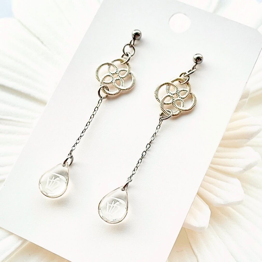【新作】ピアス・イヤリング 中華風飾り結び×ドロップ 西